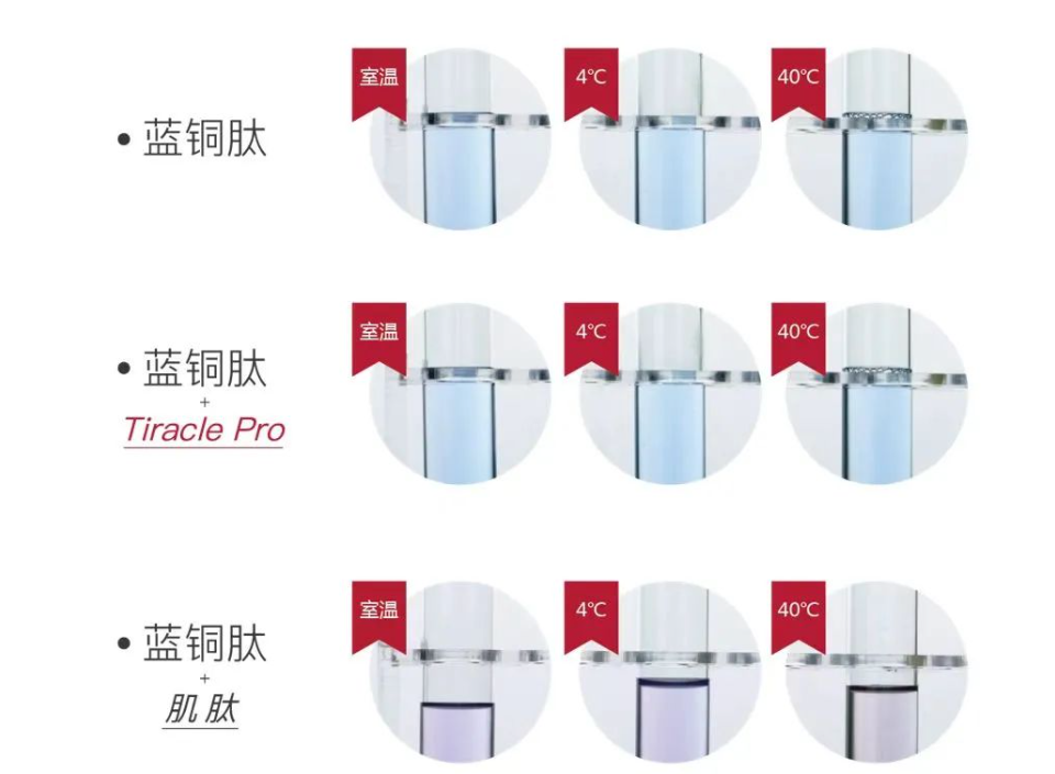 有了對(duì)功效的論證,團(tuán)隊(duì)仍然希望通過成分的復(fù)配來進(jìn)一步提升和放大功效,力爭做到即時(shí)和長效功效的兼顧。經(jīng)過層層篩選排除,團(tuán)隊(duì)最終發(fā)現(xiàn)藍(lán)銅肽與獨(dú)家原料雙菌發(fā)酵成分TIRACLE PRO搭配時(shí)具有1+1>2的顯著功效。