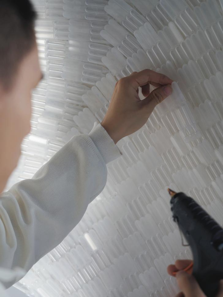此次藝術作品“甘肅柳鶯”制作過程中使用的次拋管是回收來的。而一葉子此前早已開始推行空瓶回收計劃,使用的次拋塑料材質(zhì)相比玻璃瓶等其他材質(zhì)包裝,也更好降解。