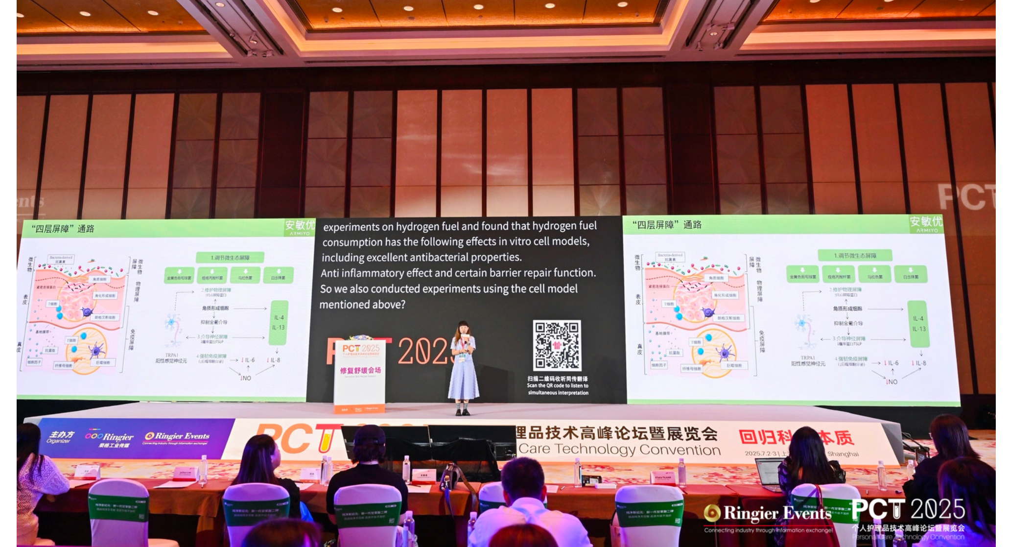榮格獎頒獎同日,上美股份基礎(chǔ)研究部秦紫嫣博士也在PCT個人護理品技術(shù)高峰論壇中發(fā)表《敏感肌修護革新:解密青蒿油的肌膚自愈新范式》主題演講,再度將2023年獲得榮格技術(shù)創(chuàng)新原料獎的“青蒿油AN+”帶上論壇。